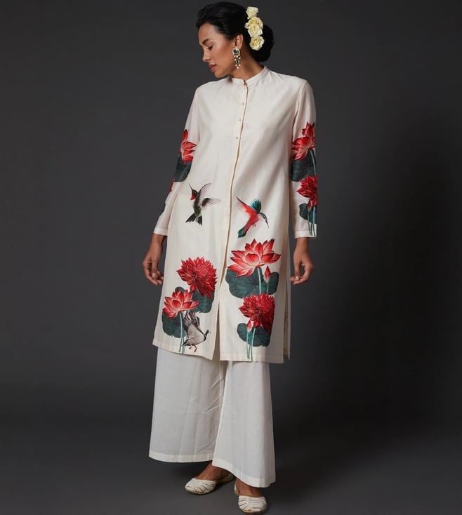 Balance By Rohit Bal Ivory Printed & Embroidered Kurta Set