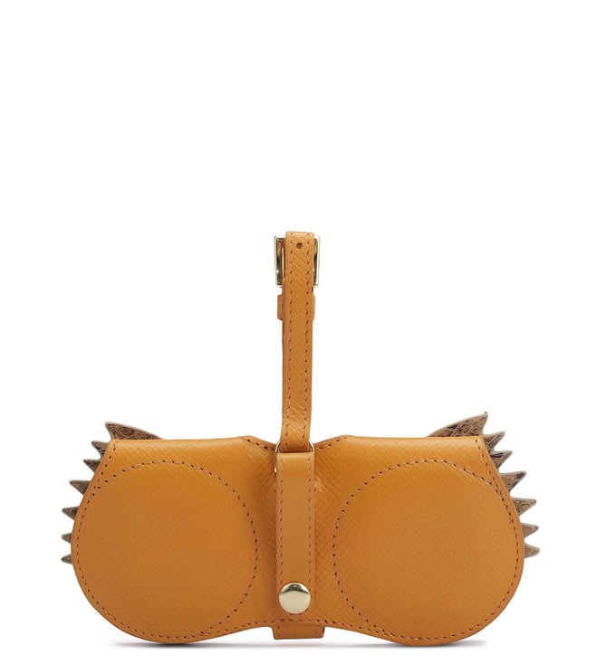 The Da Milano Flame Spectacle Case in vibrant orange is a stylish unisex accessory crafted from genuine leather, perfect for safely storing your eyewear. Disclaimer: All other items in the image are only for display purposes and will not be a part of the delivery content. Product colour may slightly vary due to photographic lighting sources. Country of Origin - India.