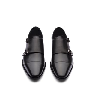 Crafted from supple black leather, these monk strap shoes exude timeless elegance. The sleek silhouette is punctuated by a polished buckle closure, adding a touch of sophistication. The smooth leather upper conforms to the foot, offering both comfort and style. The durable construction ensures long-lasting wear, making them a versatile choice for both formal and semi-formal occasions. Whether paired with a tailored suit or a smart casual ensemble, these shoes will elevate your look with their understated refinement.