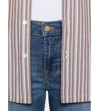 Elevate your wardrobe with the 7 For All Mankind Blue Skinny Fit Jeans. Designed with blue, concealed fly and button fastening, belt loops, classic five pockets, turn-up hem, these trousers combine comfort and sophistication for everyday wear.