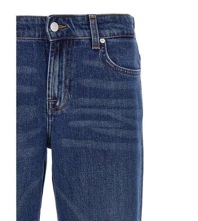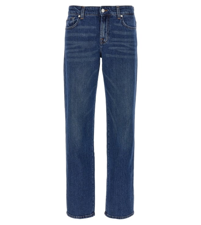 Elevate your wardrobe with the 7 For All Mankind Blue Straight Fit Jeans. Designed with zip fly, button closure, belt loops, pockets, composition: cotton, these trousers combine comfort and sophistication for everyday wear. Products purchased from Darveys are supported exclusively by the warranty/exchange policies of Darveys and its partner boutiques. Brand owners and their channel partners are not responsible for exchange/warranty services for items purchased through Darveys.