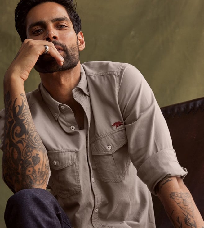 Beige Escape Full Sleeve Button Collar Shirt - Regular Fit