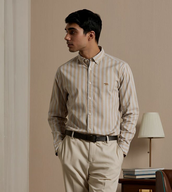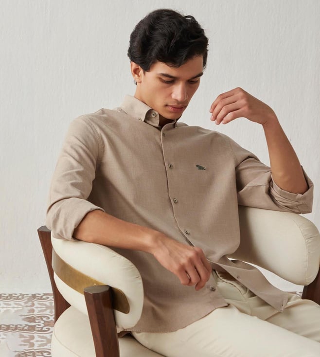 Beige Oxford Full Sleeve Button Down Shirt - Regular Fit