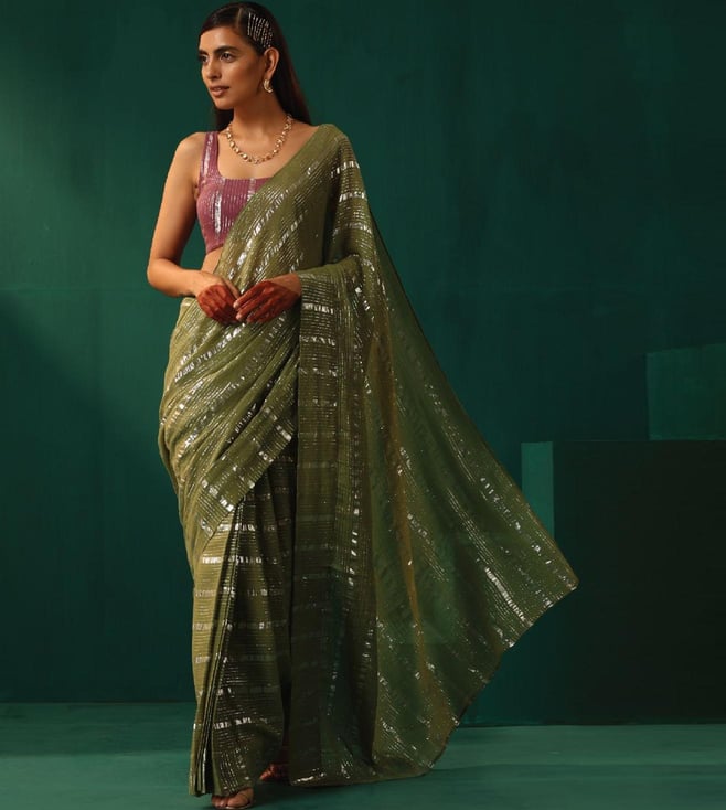 Dark Green Maati Bandhani Printed Silk Plazzo Stitched Saree