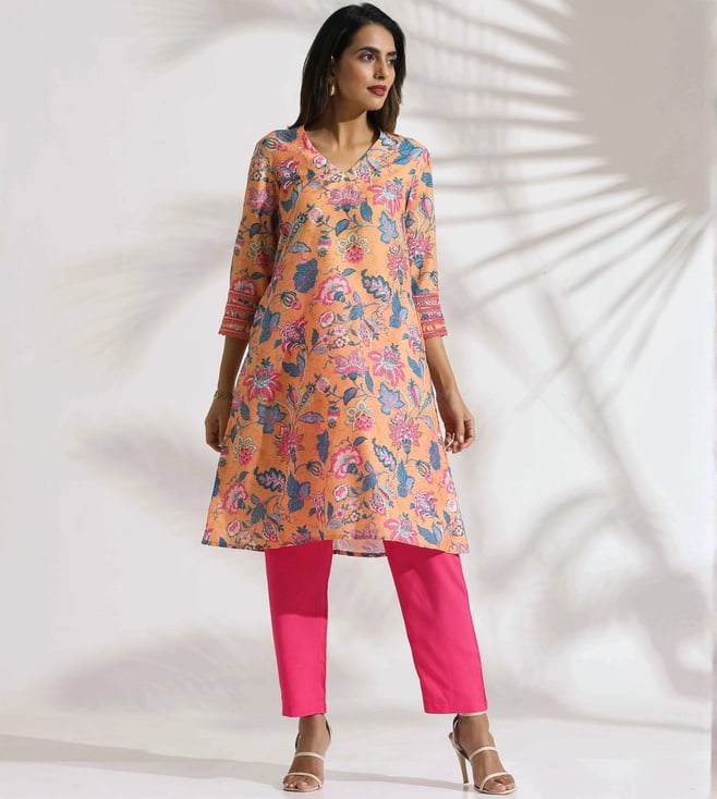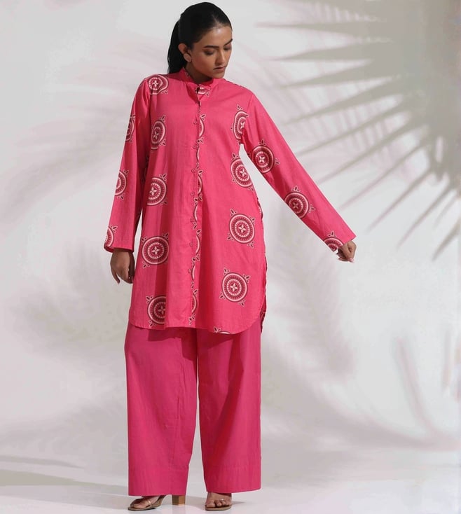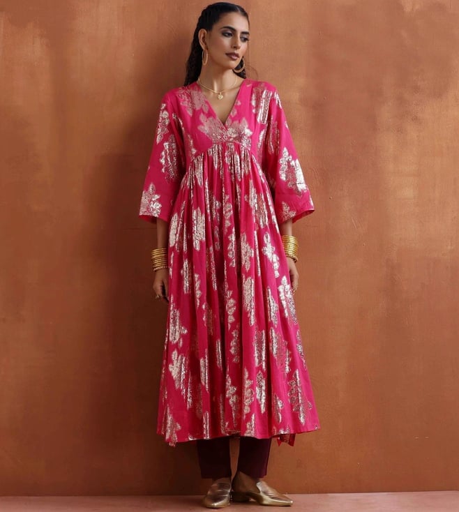 Pink Phoolmandi Metallic Flared Anarkali Kurta Set