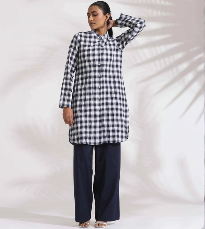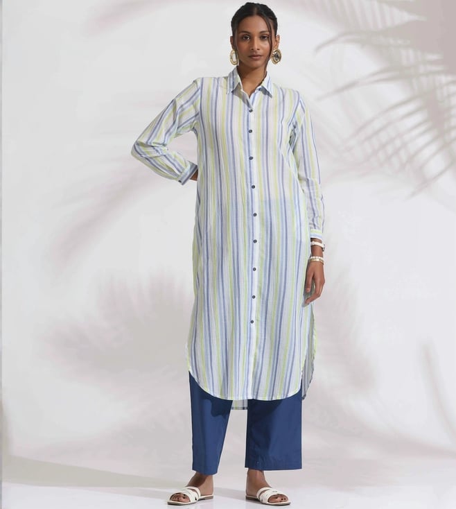 Off-White Cotton Multi Stripe Flared Kurta Set