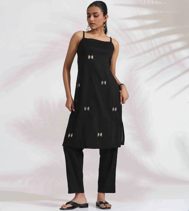 True Browns Black Solid Regular Fit Ethnic Trouser