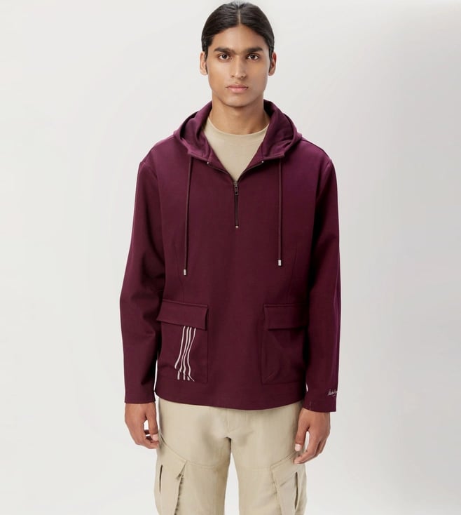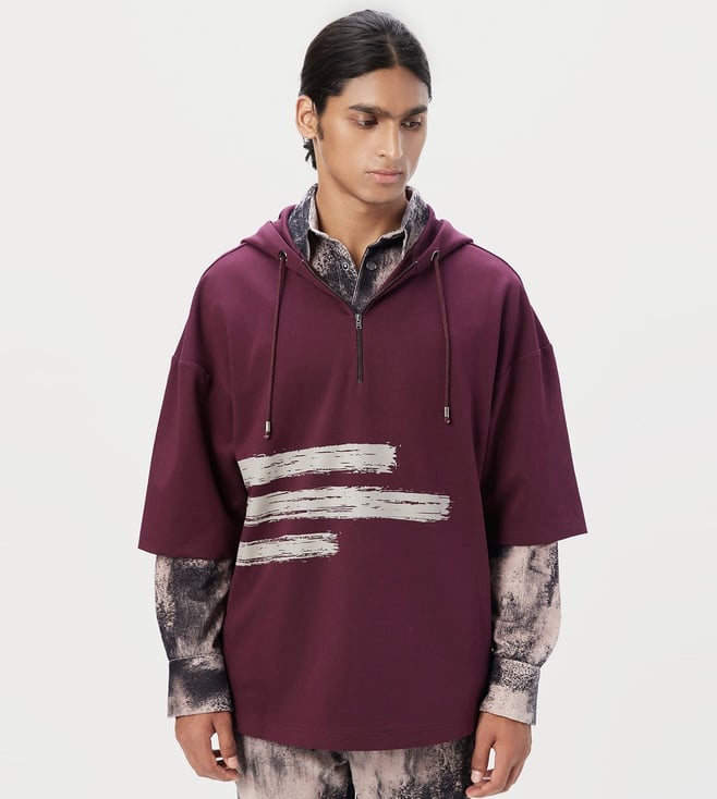Wine Cotton Comfort Fit Printed Sweatshirt