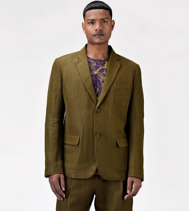 Khaki Linen Comfort Fit Printed Bomber Jacket