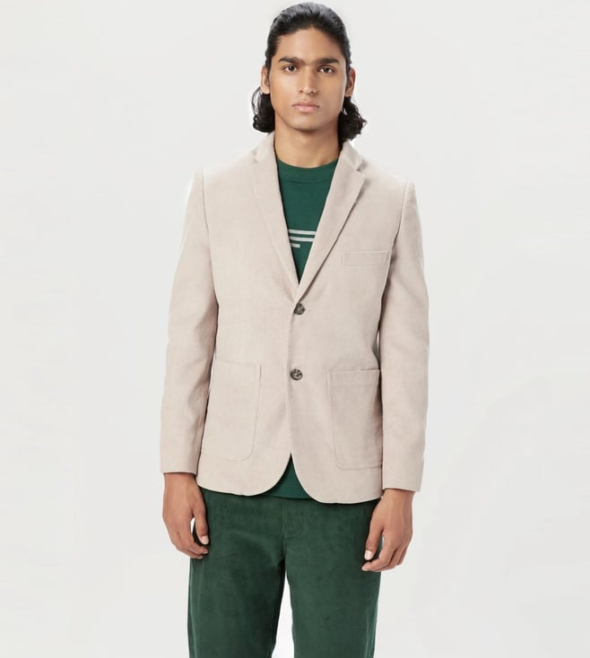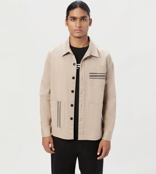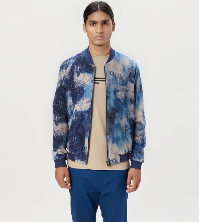 Beige Linen Comfort Fit Printed Bomber Jacket