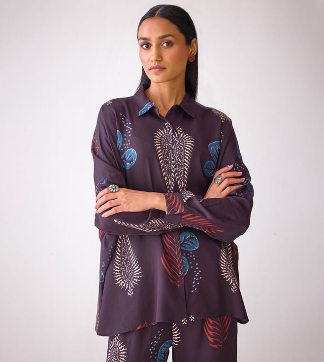 Multi Cotton Slub Print Elbow Sleeves Shirt