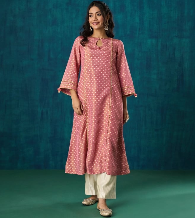 Pink Noor Chanderi Embroidered Kurta