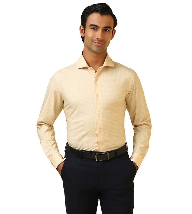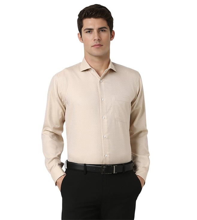 Beige Cotton Regular Fit Self Pattern Shirt