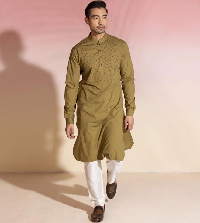 Grey Chambray with Bandhgala Feature Short Kurta with Side Slit Overlap Pants
