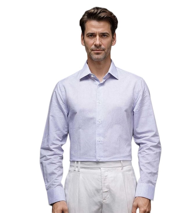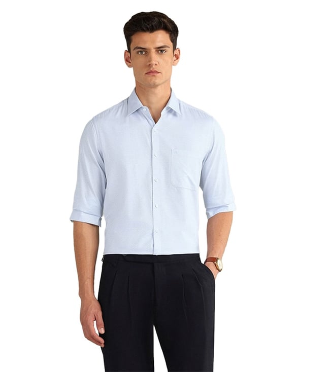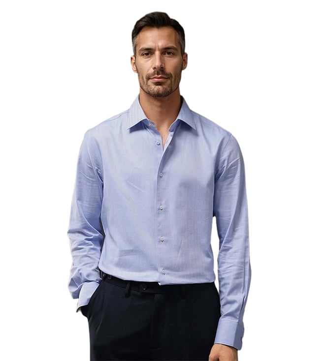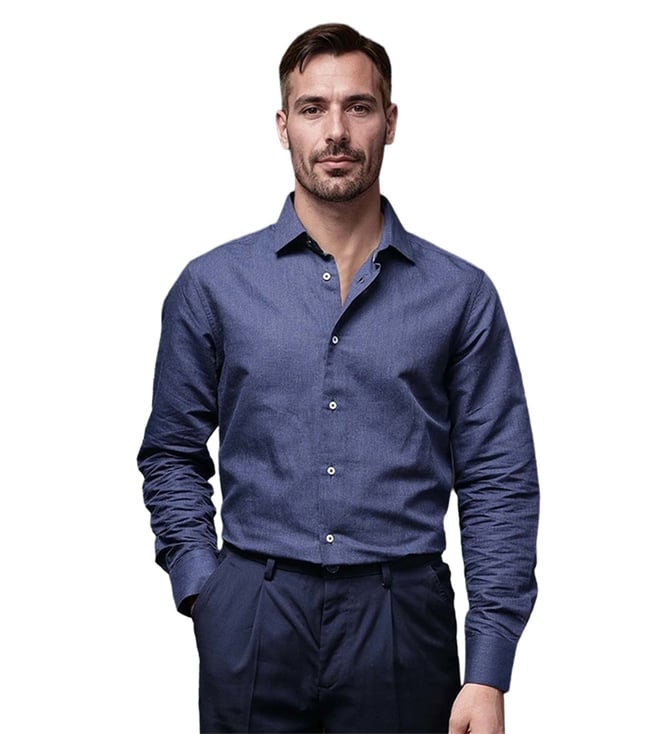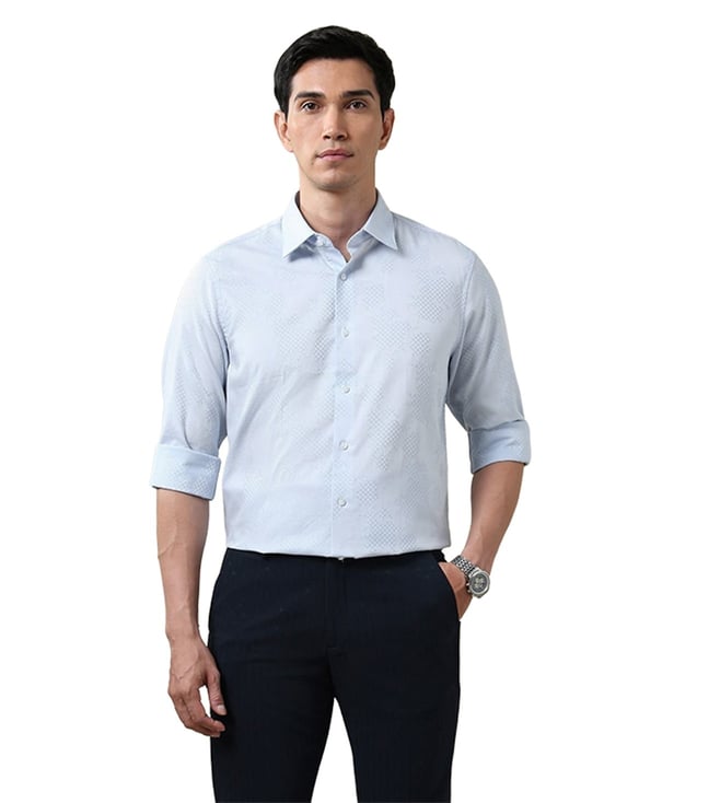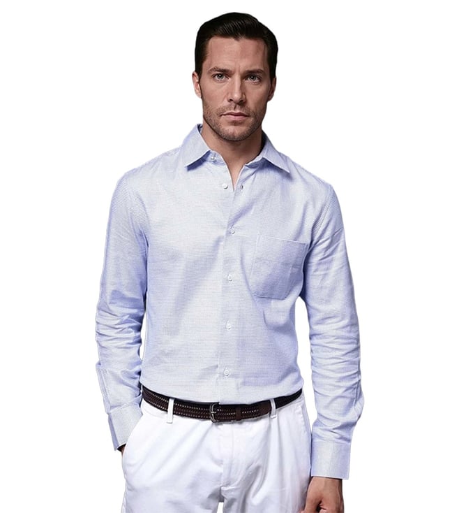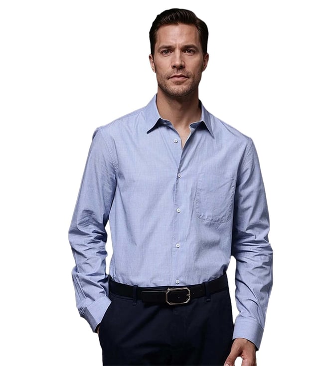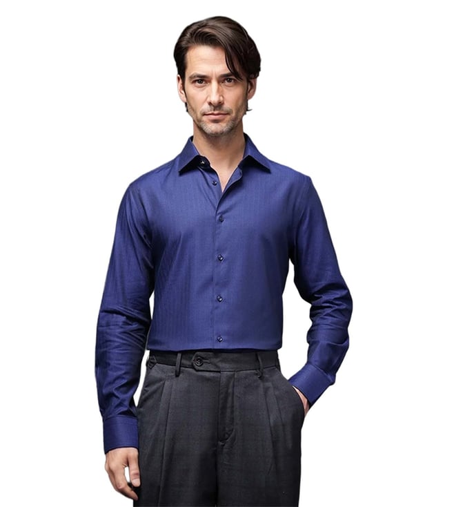 Blue Cotton Regular Fit Self Pattern Shirt