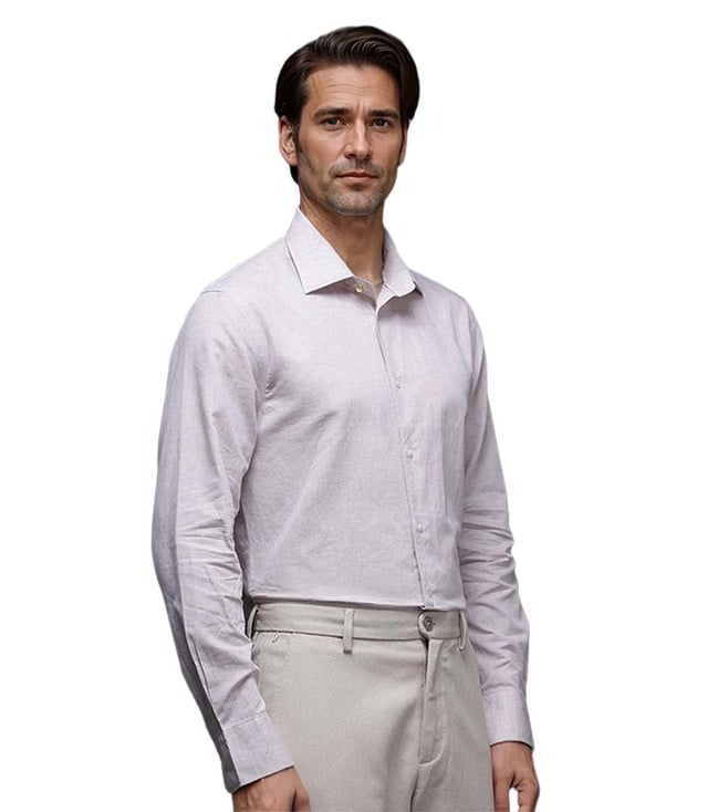 Beige Cotton Regular Fit Self Pattern Shirt