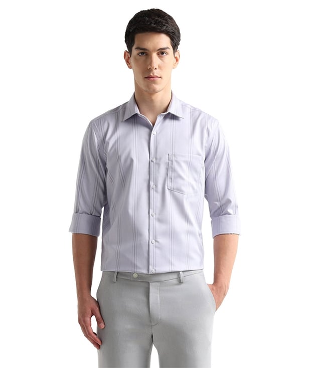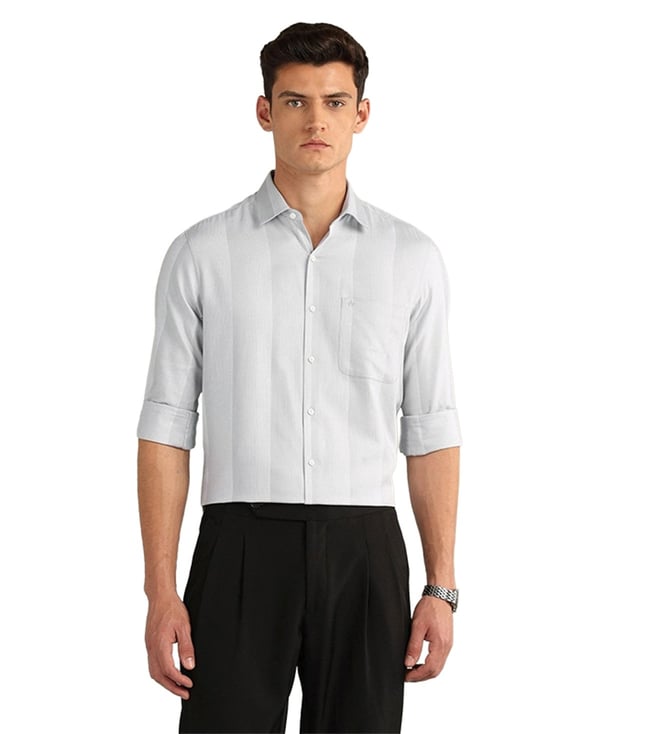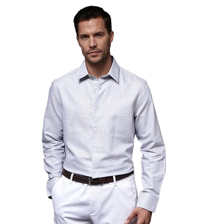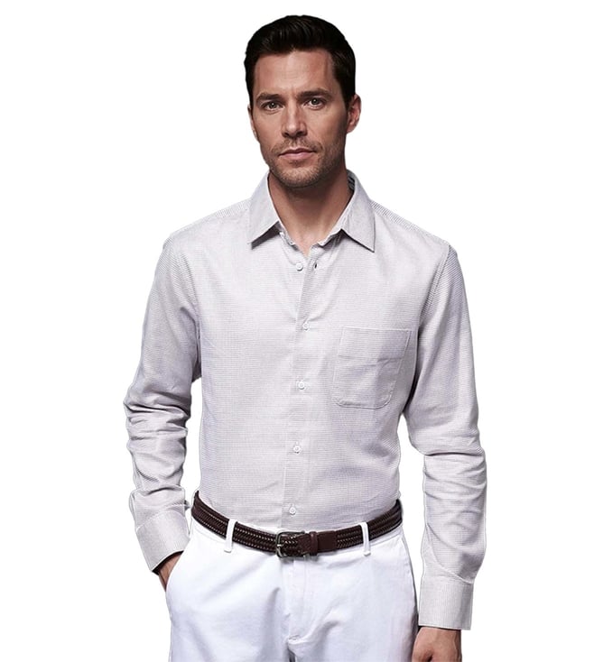 Grey Cotton Regular Fit Self Pattern Shirt