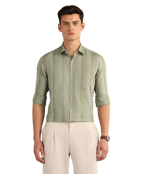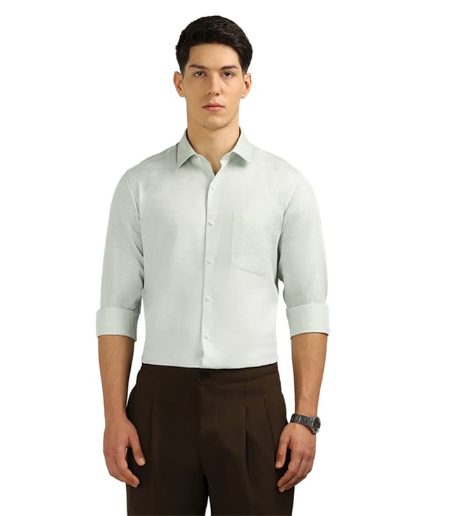 Green Cotton Regular Fit Self Pattern Shirt