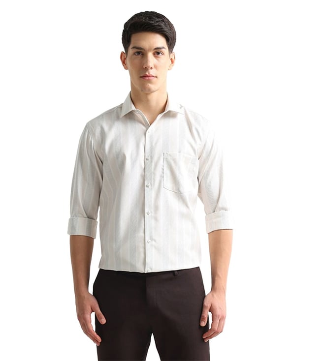 Beige Regular Fit Stripes Shirt