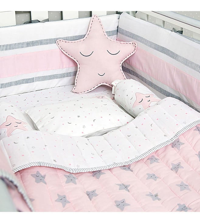 Organic Cotton Cot Bedding Set - Sleepy Star (Pink)