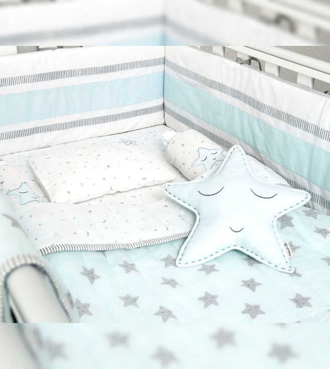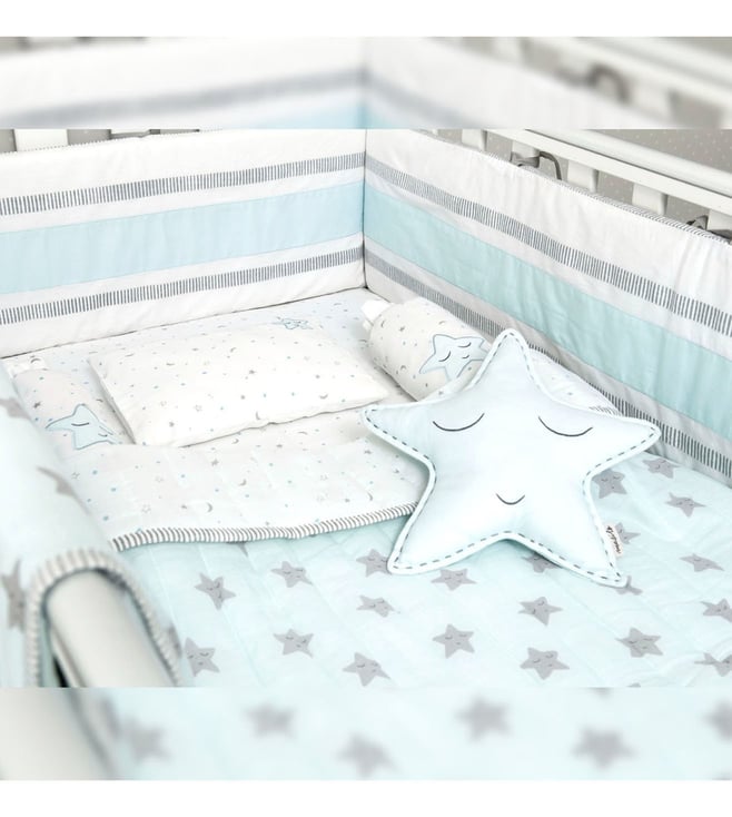 OrganicCotton Cot Bedding Set For Baby's Nursery Decor Luxury Gift Hamper Pack of 7-Star-Blue