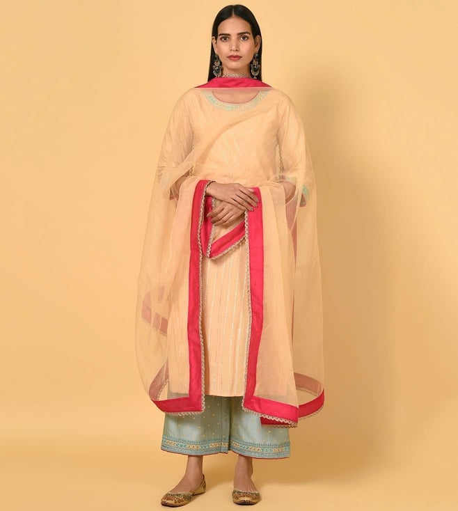 Susegad Lace Work Kurta Pant & Dupatta Set