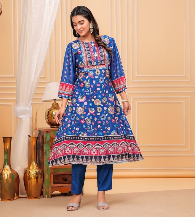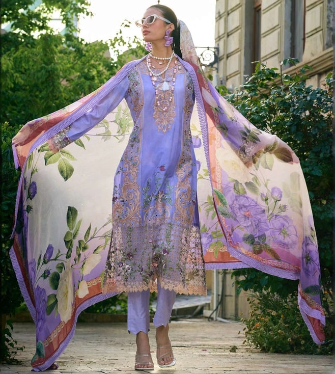 Veda Purple Floral Printed Premium Kurta With Pant And Dupatta