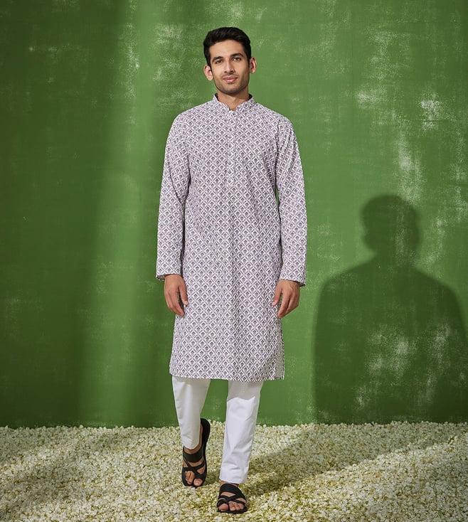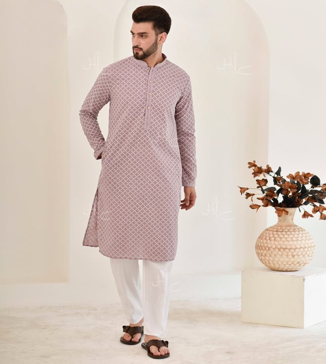 Lavender Cotton Straight Chikankari Long Kurta