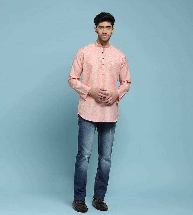Peach Poly Cotton Poly Cotton Solid Men's Short Kurta - Peach