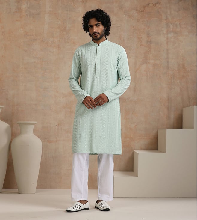 Green Regular Fit Embroidery Long Kurta
