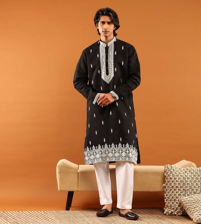 Men's Black Ikat Print Mandarin Collar Kurta Co-ord Set
