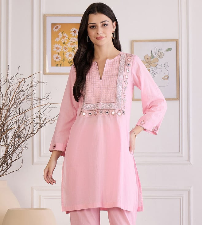 Pink Yoke Embroidered Kurta