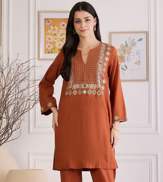 Earthy Brown Yoke Embroidered Kurta