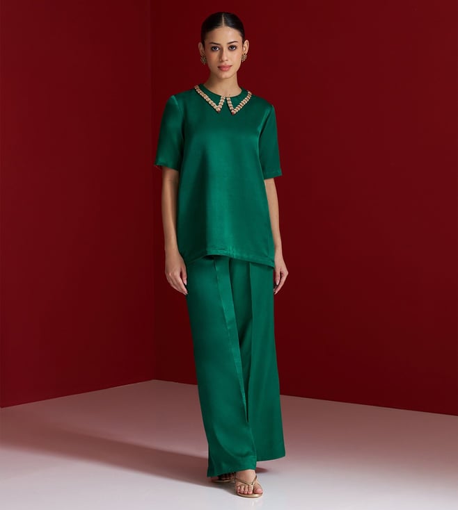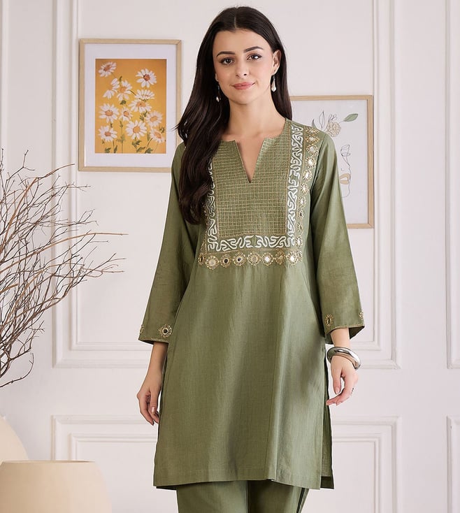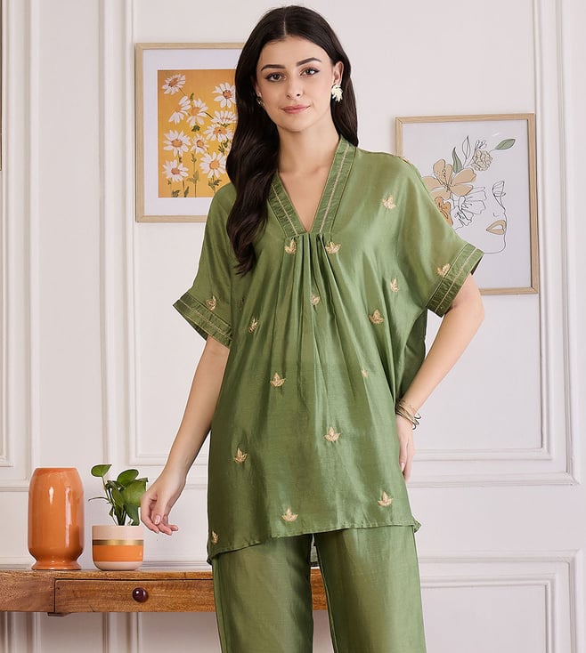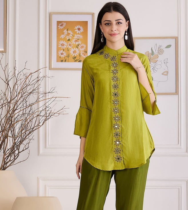 Furn Green Hand Embroidered Shirt Top