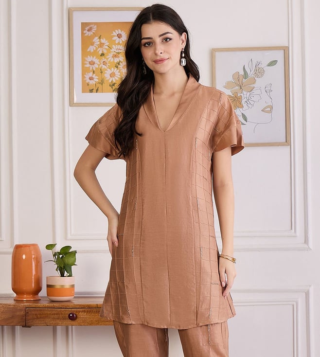 Light Rust Mirror Laced Kaftan Top