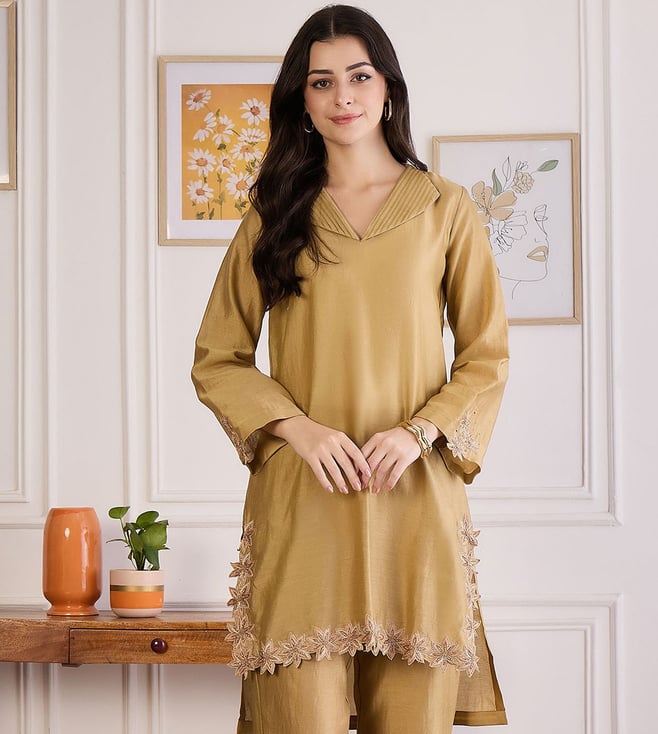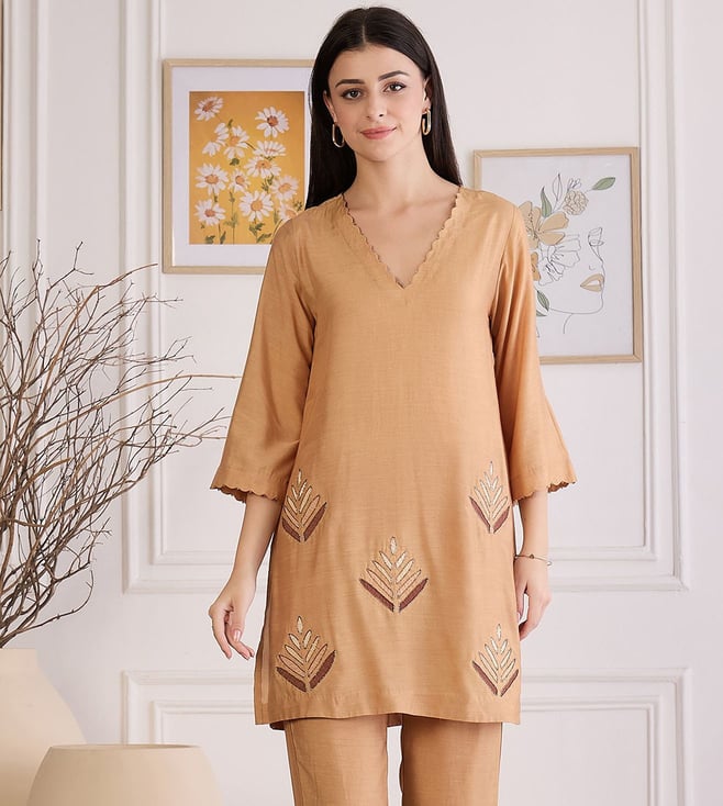 Sepia Applique Embroidered Kurta