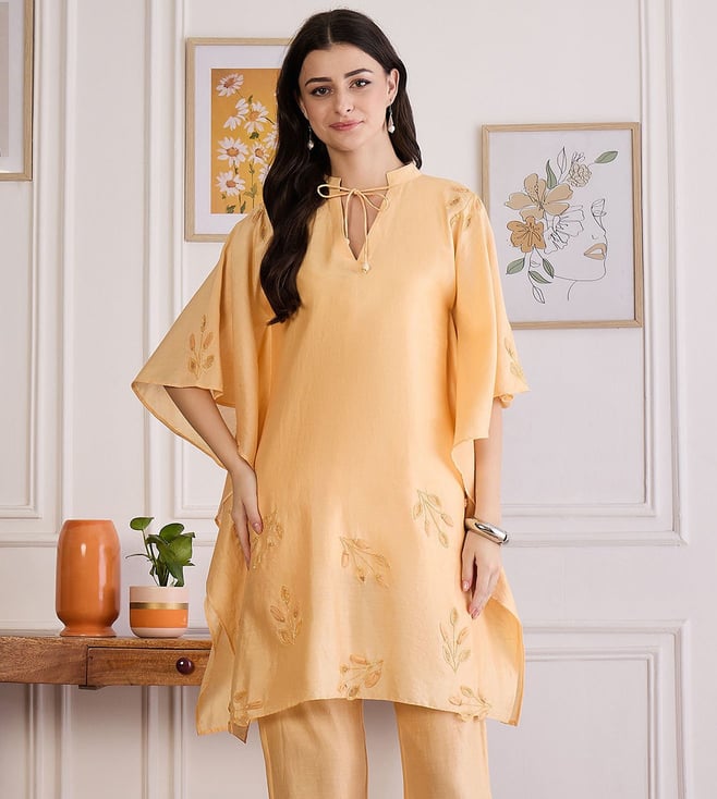 Butter Yellow Applique Kaftan Top