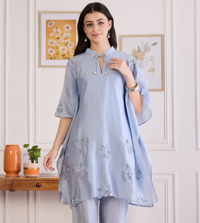 Ice Blue Applique Kaftan Top