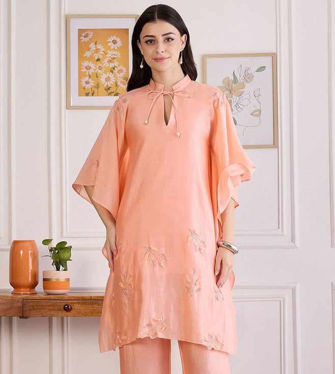 Peach Applique Kaftan Top