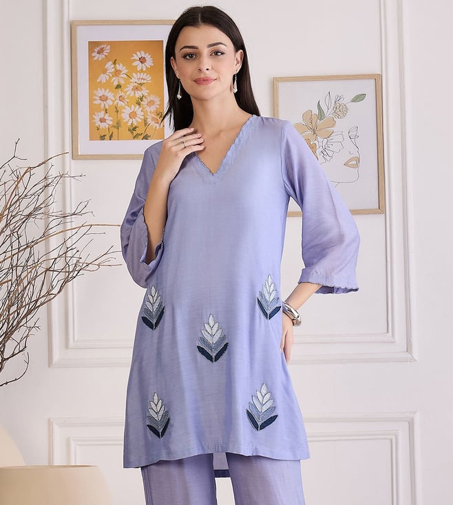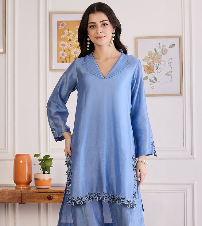 Indigo Applique Embroidered Kurta