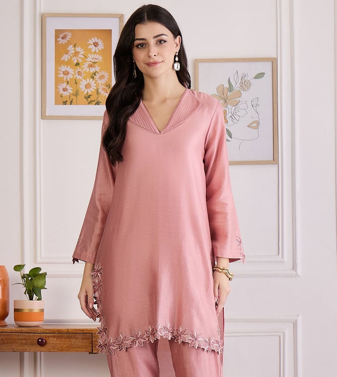 Carnation Pink Floral Cutwork Kurta