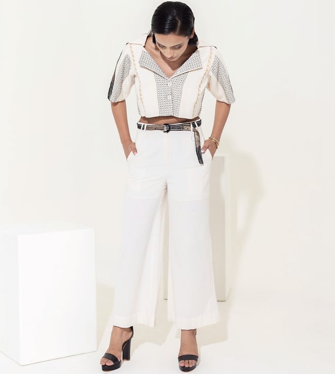 Ivory Dhoop Chaon Pants With Embroidered Belt