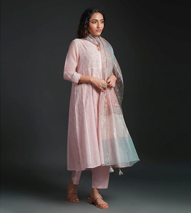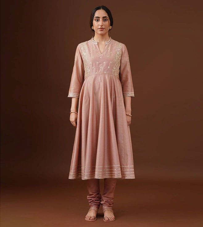 Women Pink Hand Embroidery Regular Fit Kurta