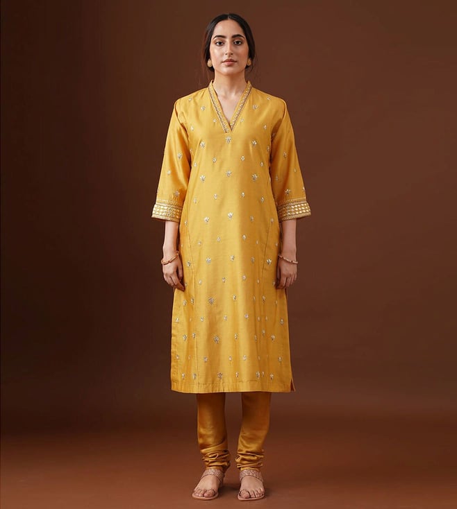 Women Mustard Yellow Gota Patti Loose Fit Kurta