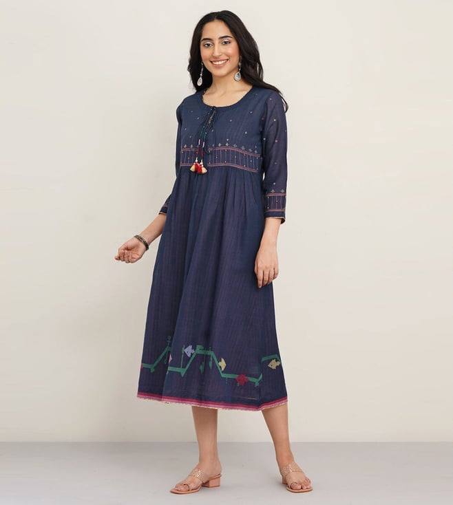 Women Blue Hand Embroidery Regular Fit Kurta