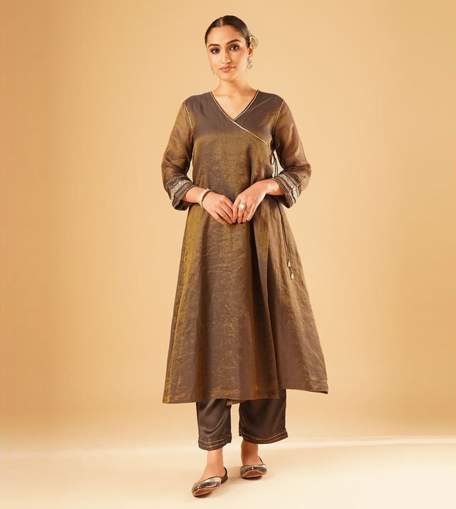 Women Brown Hand Embroidered Loose Fit Kurta