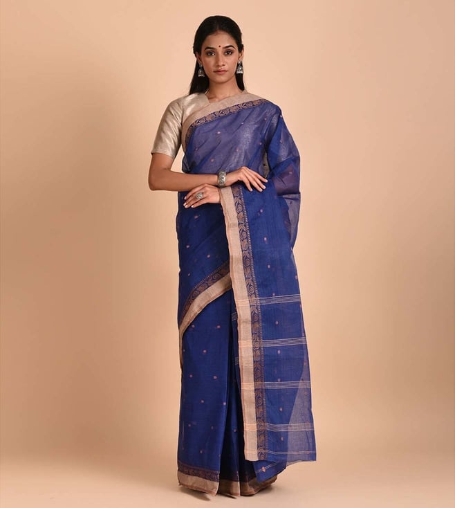 Blue Block Print Saree