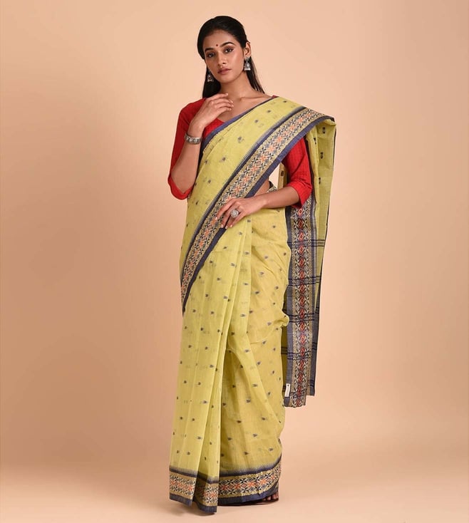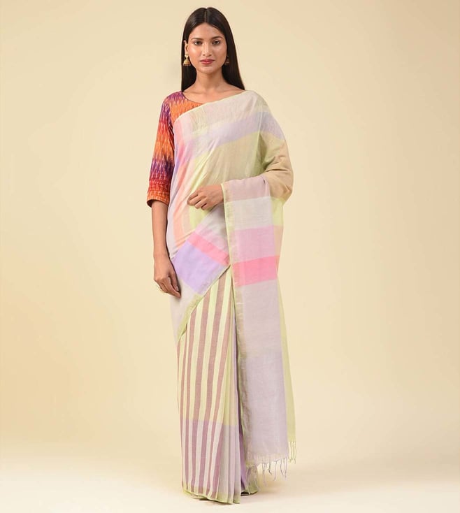 Yellow Striped Hand Woven Saree
