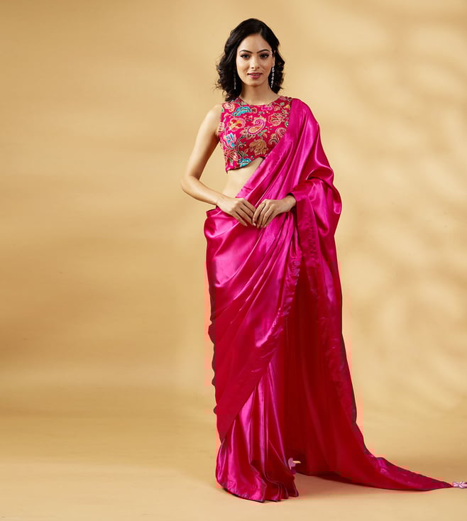 Pink Satin Pre Draped Saree With Blouse