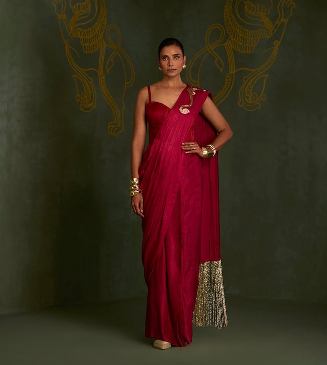 Red Gajji Silk Festive Embroidered Drape Saree
